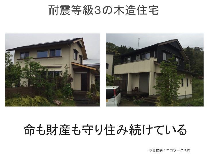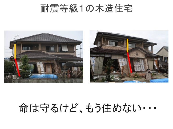 ⇧熊本地震での耐震等級1の建物被害状況